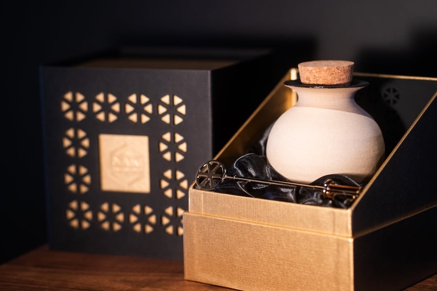 “That story really struck a chord with me. We wanted to create something that endures, a legacy piece that could be passed down through generations. You could take a spoonful today, and your descendants could take one from the same jar decades and potentially millennia later,” says Burchell-Burger.